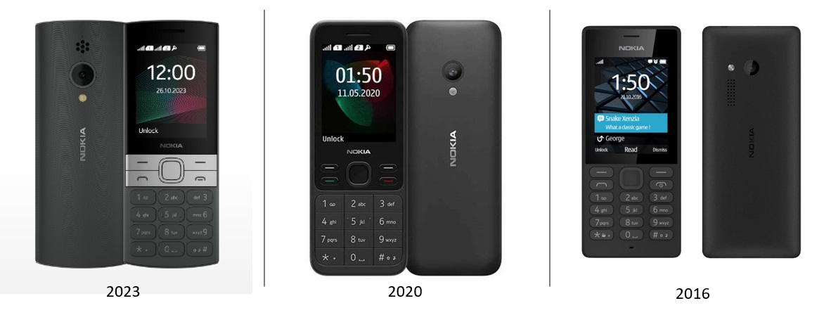 این شرکت اکنون از دو گوشی نوکیا ۱۳۰ و نوکیا ۱۵۰ رونمایی کرده است. نوکیا ۱۵۰ اولینبار در سال ۲۰۱۶ به بازار عرضه شد. سپس در سال ۲۰۲۰ با تغییرات دیگری در دسترس کاربران قرار گرفت و اکنون با طراحی کاملاً جدید در پنل جلویی و پشتی به بازار عرضه میشود.